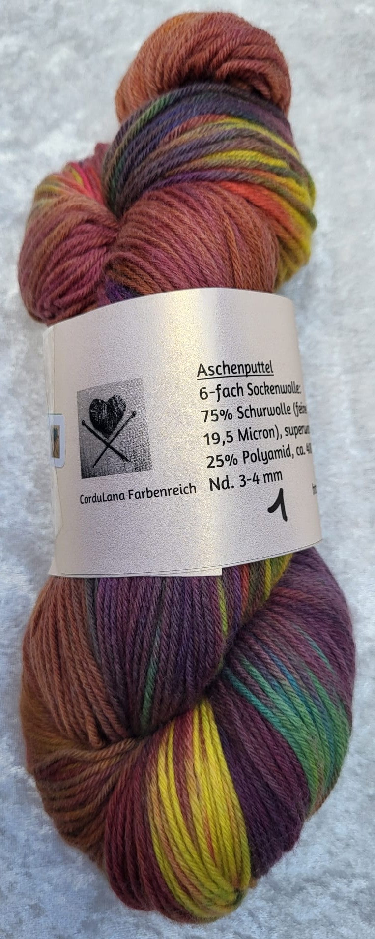 6-fach Sockenwolle: 75 % Schurwolle, 25 % Polyamid